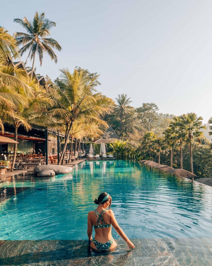 This is our final pick, and it’s a trendy place with an urban-jungle vibe. It’s in Ubud and features an amazing infinity pool.